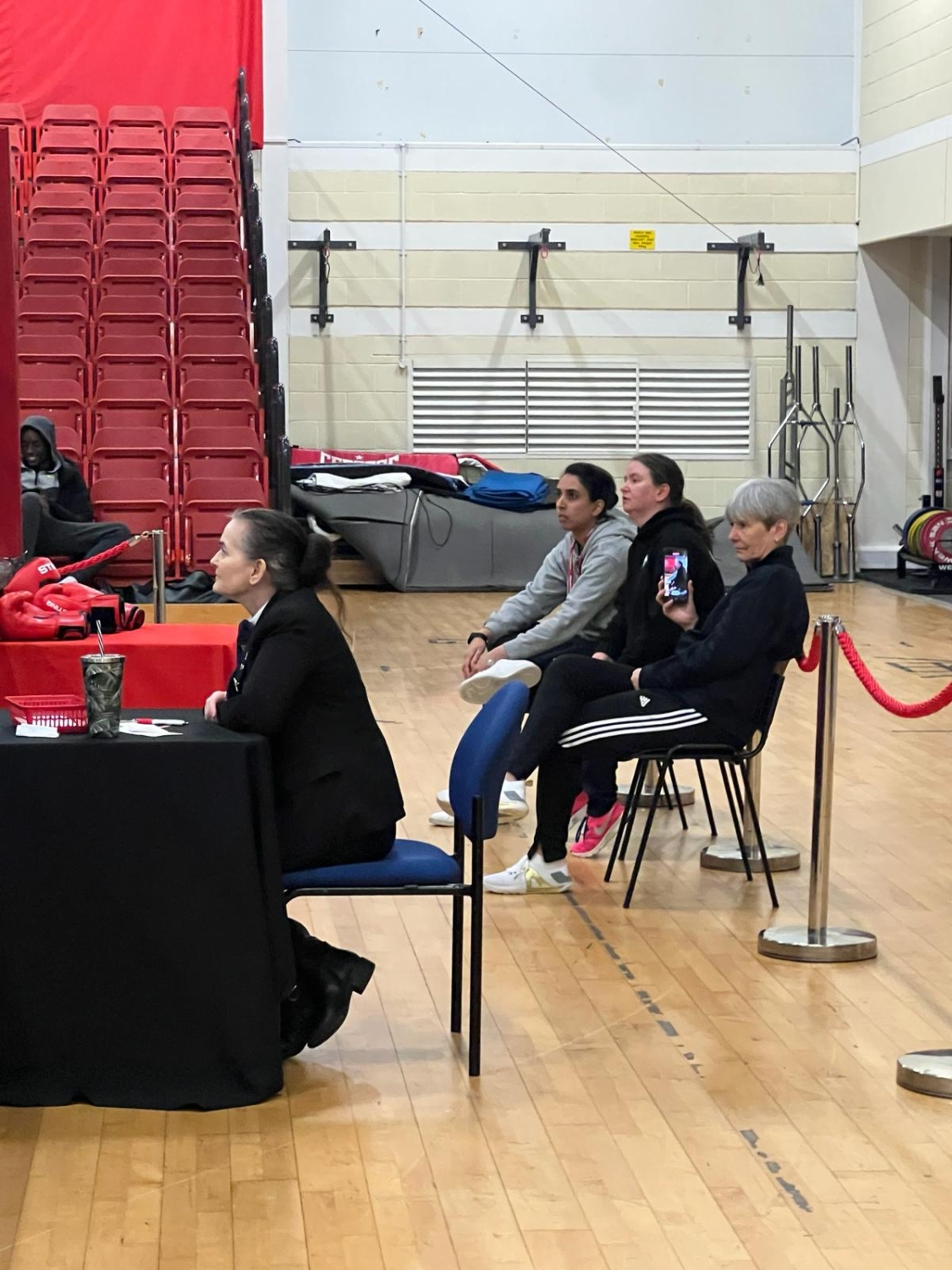 On Saturday, gym bouts were staged to mimic, giving the officials a chance to practice their judging, timekeeping, and refereeing skills.